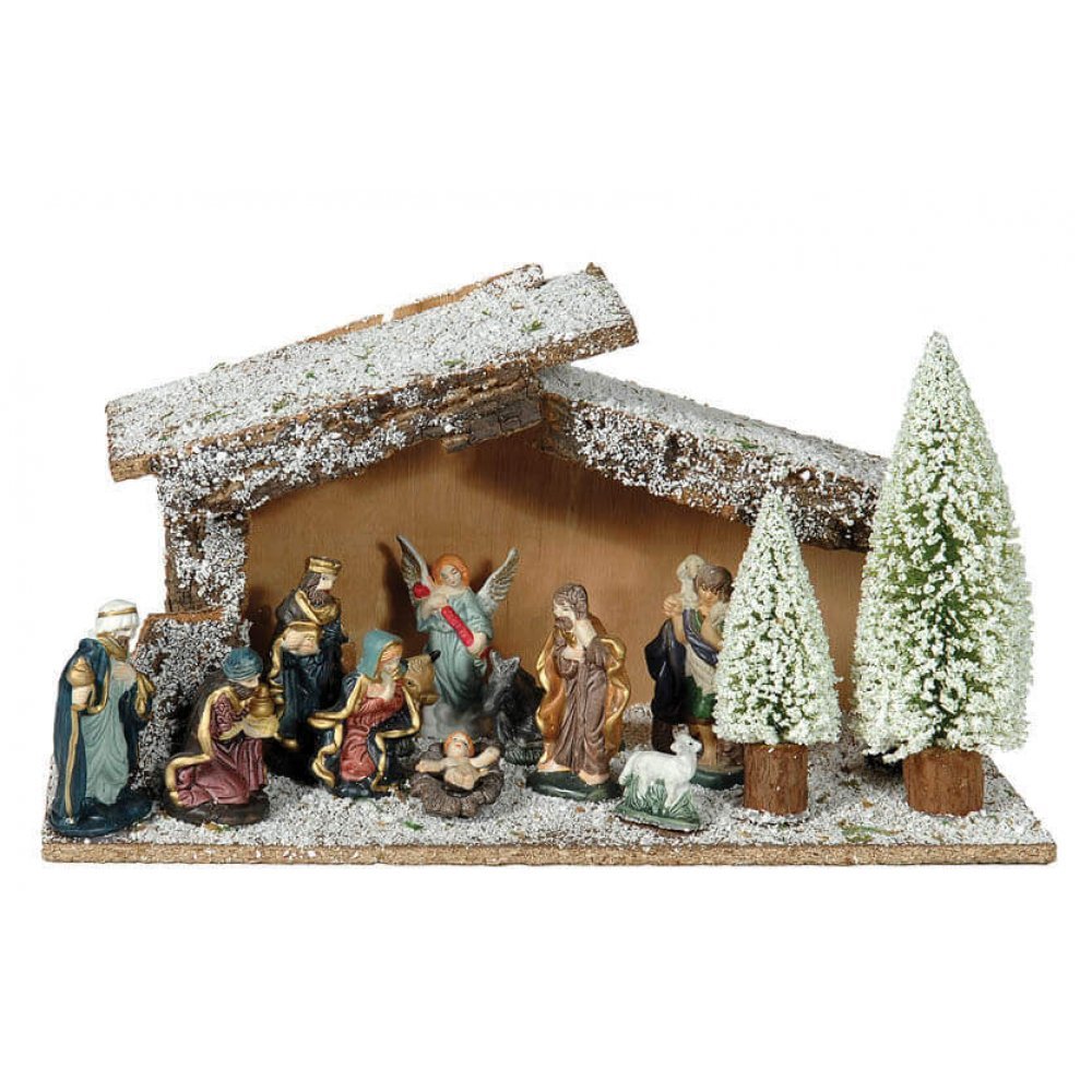 Χριστουγεννιάτικη Φάτνη Ξύλινη Χιονισμένη με 11 Φιγούρες
