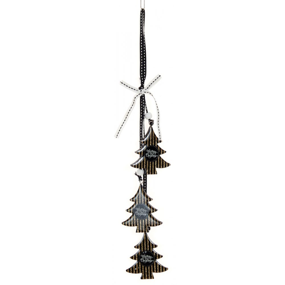 Χριστουγεννιάτικα Ξύλινα Δεντράκια Καφέ Σκούρα με Χρυσές Ρίγες