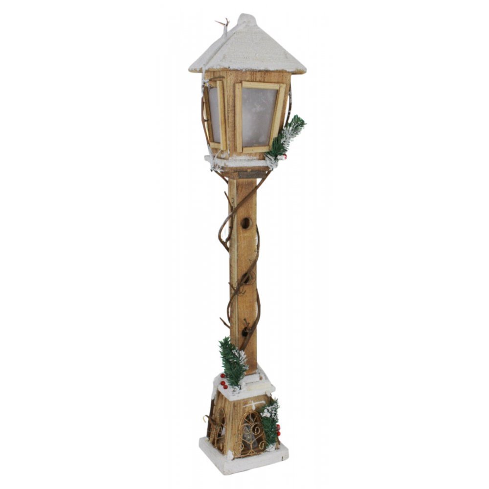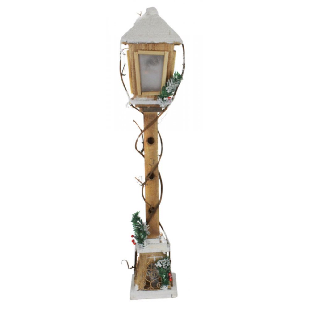 Χριστουγεννιάτικο Διακοσμητικό Ξύλινο Φαναράκι με 15 LED, Καφέ