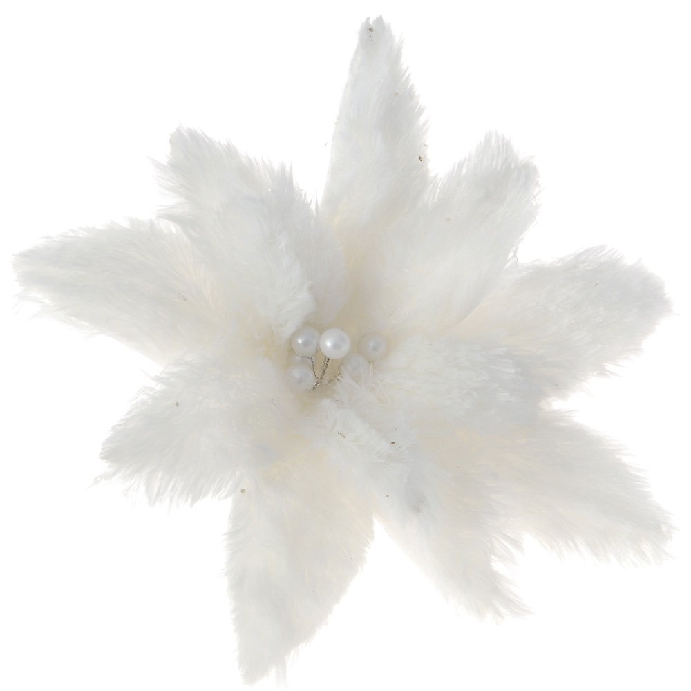 Χριστουγεννιάτικο Λουλούδι Αλεξανδρινό, Λευκό με Γούνα και Κλιπ